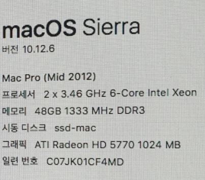 맥프로 12코어 2012년식 두개의 3.46GHZ 최고사양